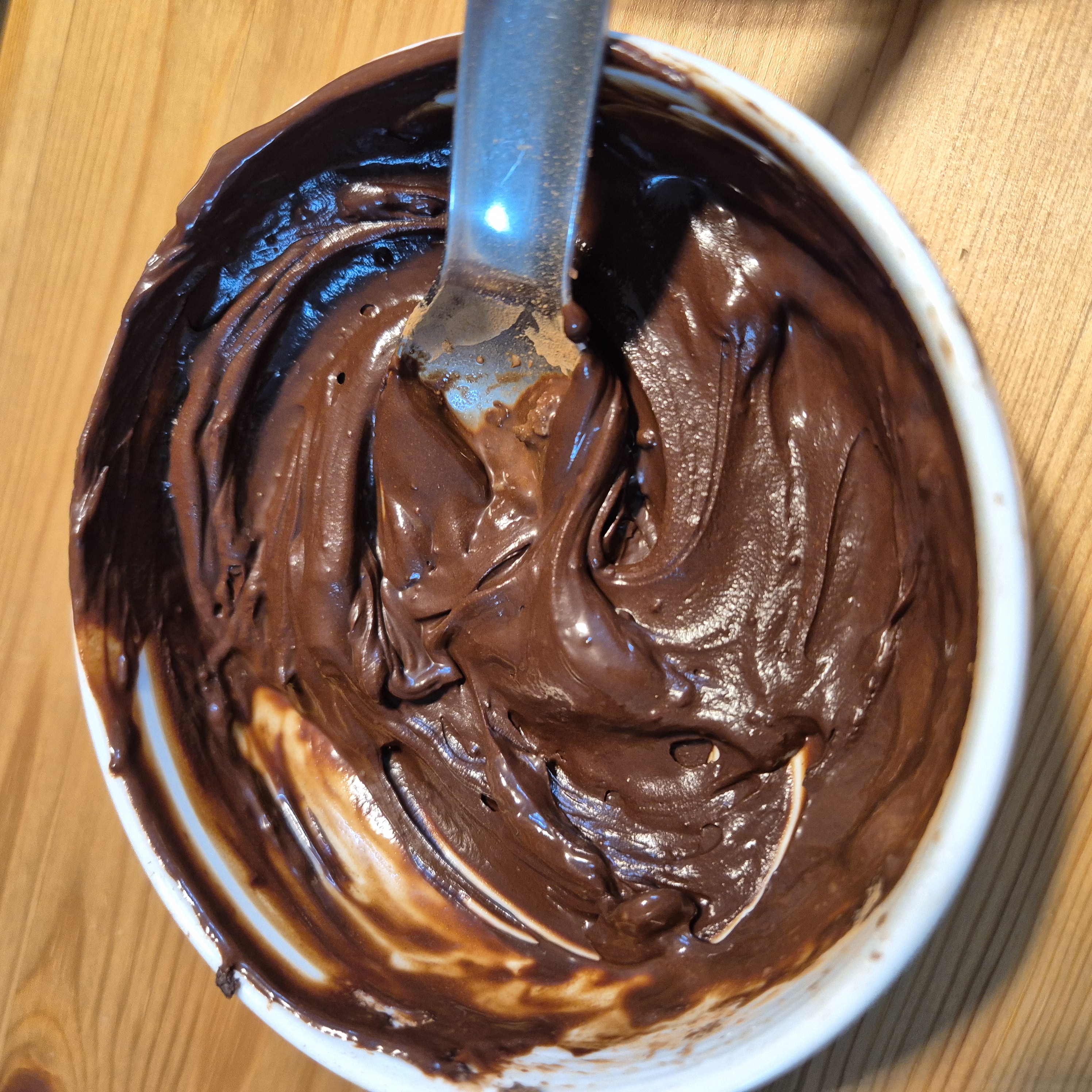 카카오파우더를 일정부분 넣고, 알룰로즈를 조금씩 추가하며 적절하게 섞이도록 비율을 조정한다.