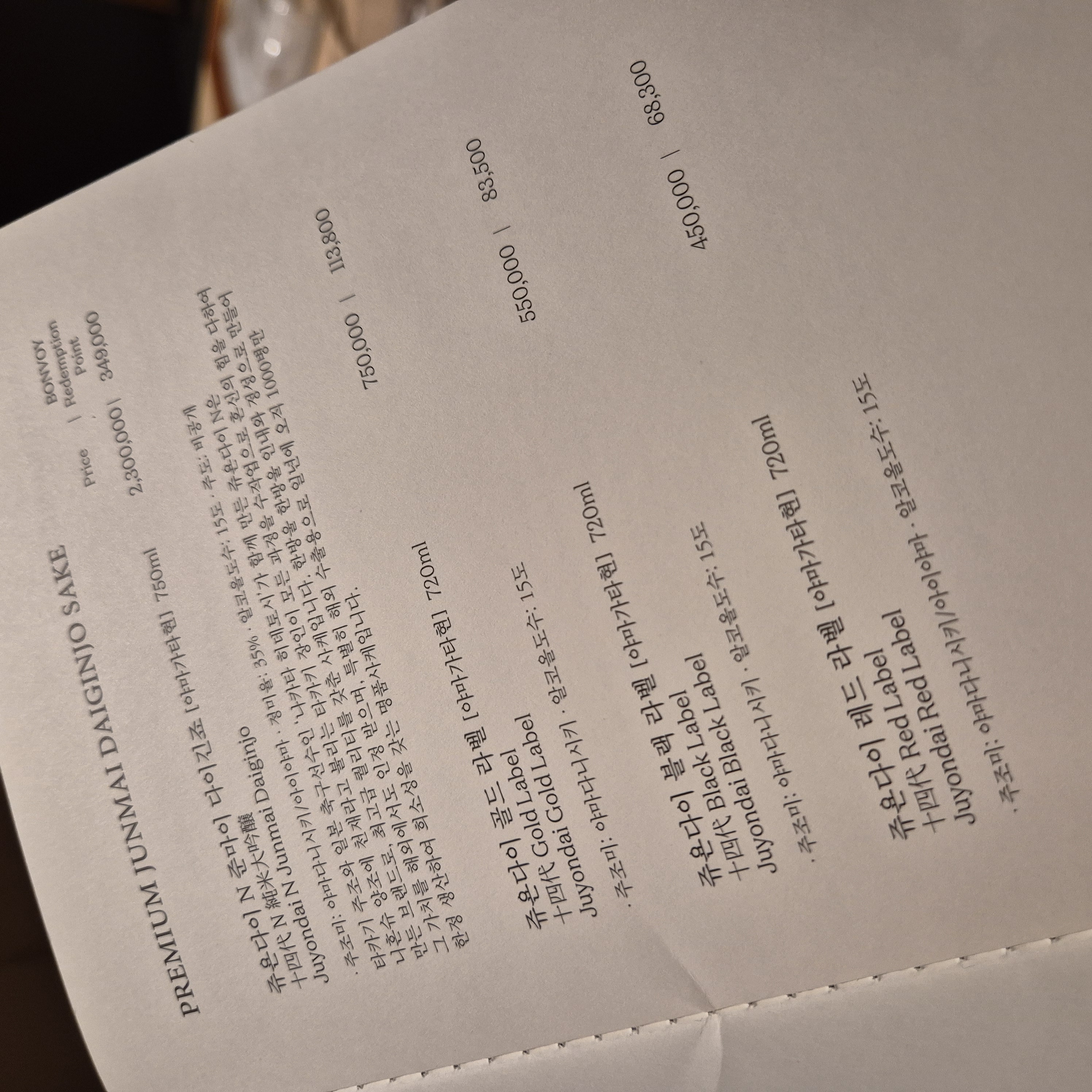 원화 가격 옆에는 Bonvoy 포인트 가격이다.
